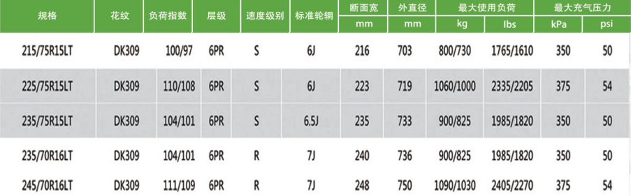 4、该花纹为双层胎侧、双层胎体结构设计,结构稳定保证使用安全